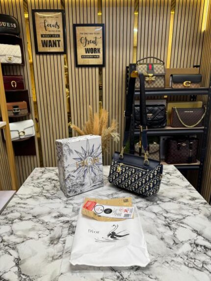 Christian Dior Noir Shoulder Bag With Original Box & Dust Bag (Blue-6919) – Luxury Designer Shoulder Handbag for Women.