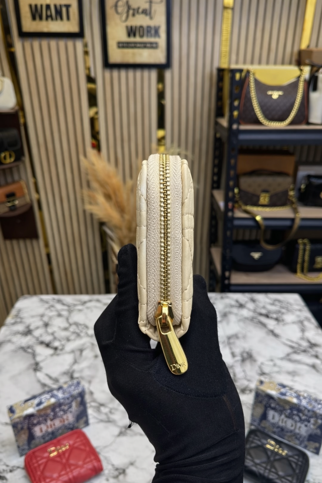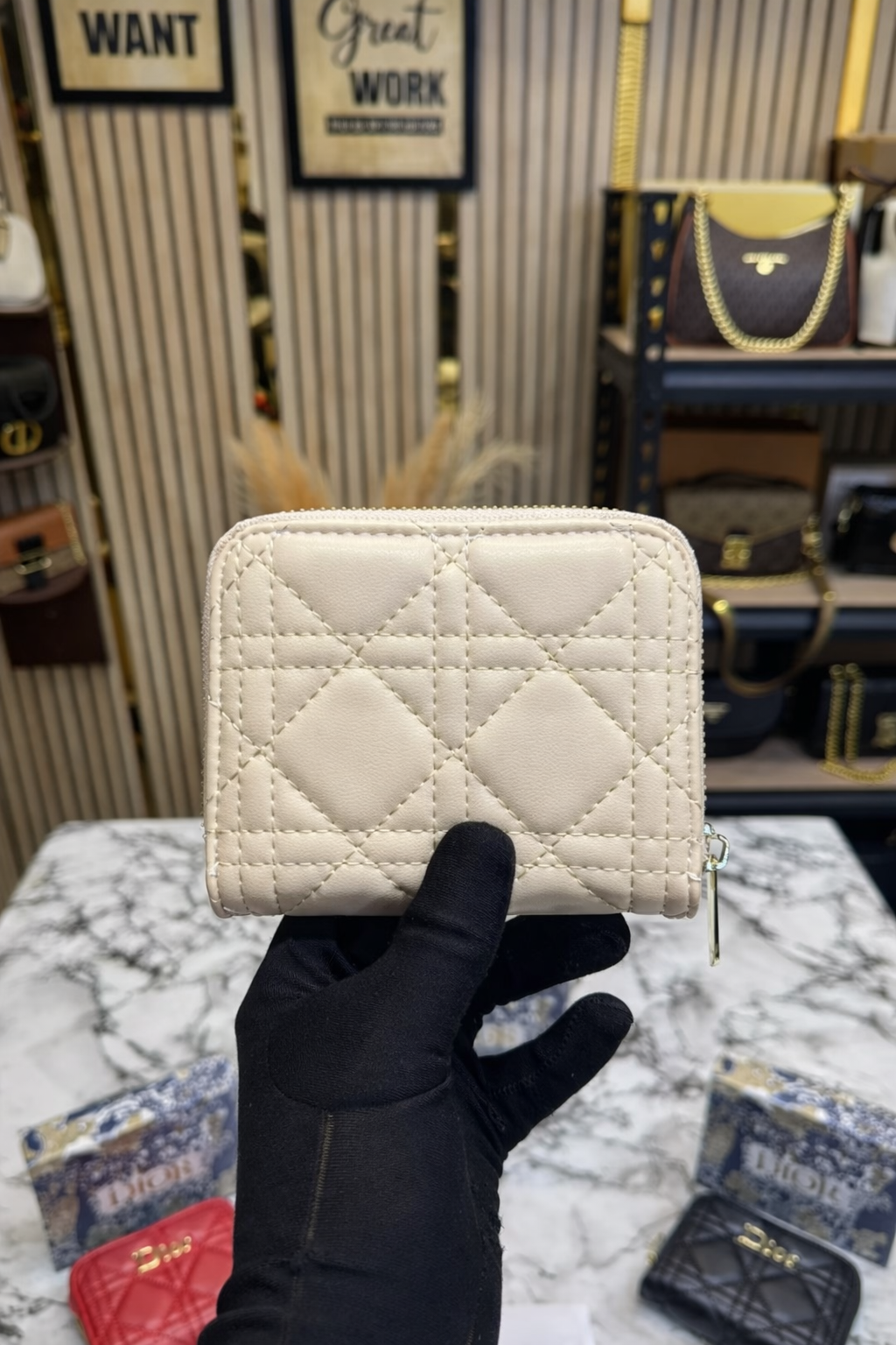 Beige Quilted Zipper Wallet with Box and Dust Bag – Premium Quality