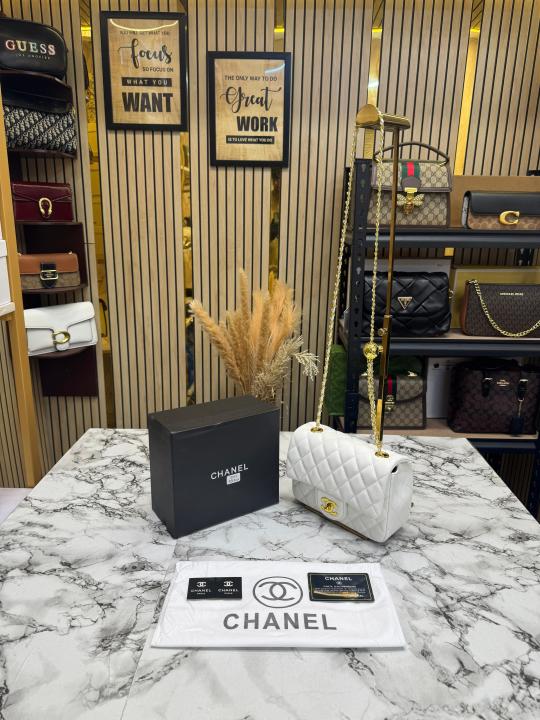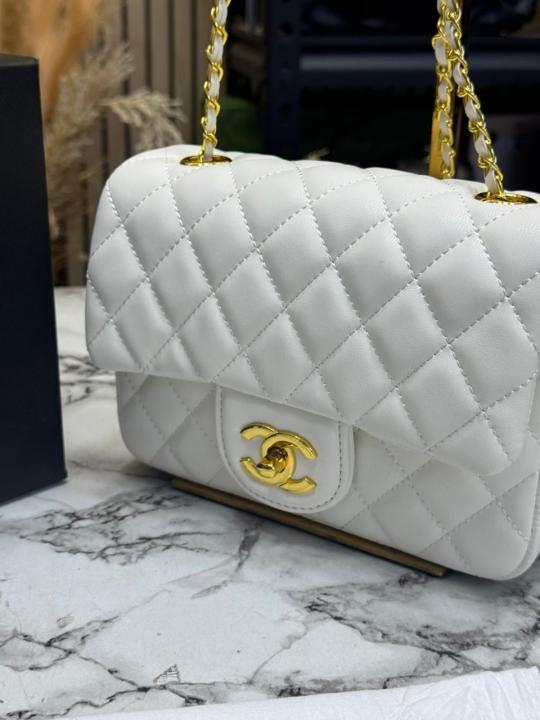 Chanel Classic Flap Mini Quilted Chain Shoulder Bag (White) – Premium Designer Crossbody Purse.