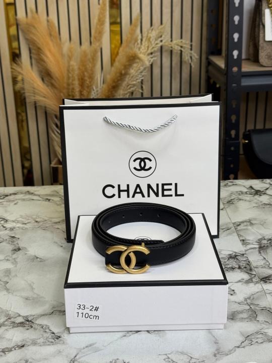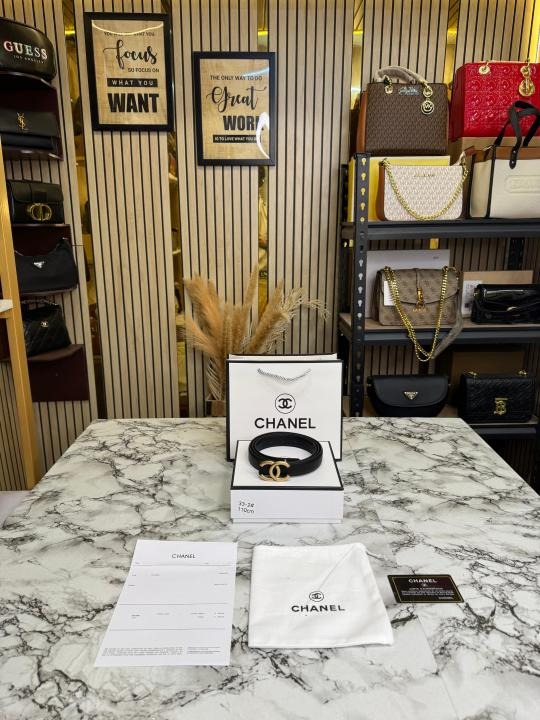 Elevate your style with this Chanel Premium Quality Belt. Featuring a striking golden initials buckle, this accessory exudes elegance. Complete with a box, dust bag, and carry bag, it makes a luxurious gift or timeless addition to your collection.