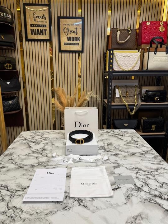 Christian Dior Belt with CD Buckle Includes Box, Dust Bag & Carry Bag