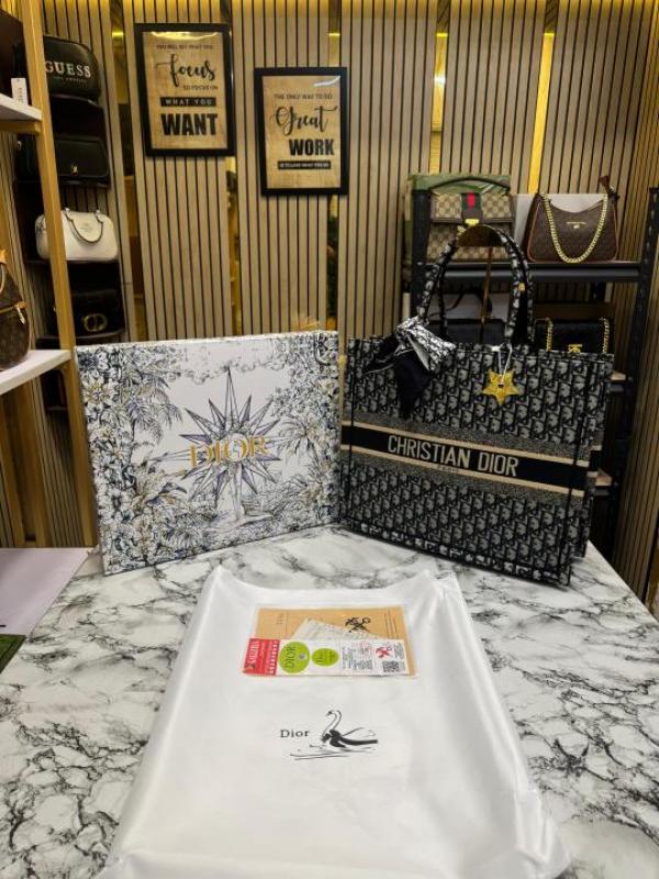 Christian Dior Book Tote with Scarf & Logo Pendant | Premium Designer Tote Bag with Box & Dust Bag.