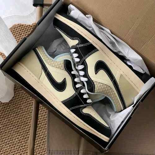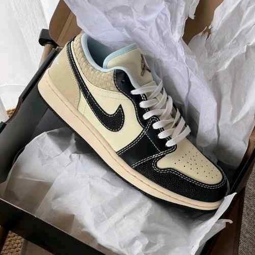 Stylish low-top sneakers featuring coconut-milk toned leather base with black overlays. Cushioned sole and durable rubber outsole provide everyday comfort, traction and modern streetwear appeal.