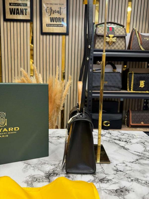 Designed with the signature Goyard-inspired canvas pattern, this handbag offers a perfect blend of tradition and modern fashion. The classic black color adds a bold