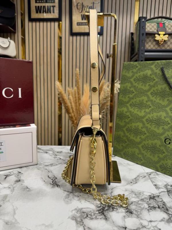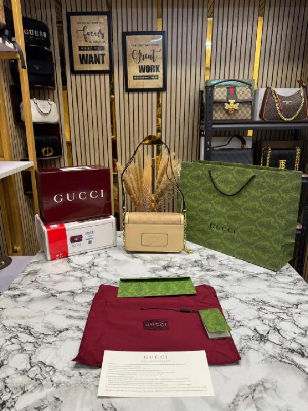 The beige GG canvas design gives the bag a refined and versatile look that pairs effortlessly with both casual and formal outfits. Its stylish structure and well-organized interior provide enough space to carry daily essentials such as your phone, wallet, cosmetics, and keys.