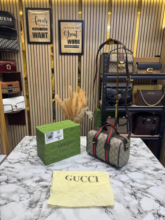 Gucci Ophidia Boston Stripe GG Top Handle Bag With Box & Dust Bag – Premium Luxury Designer Handbag for Women.
