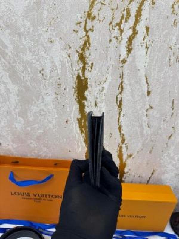 Crafted from high-quality material with detailed finishing, the wallet offers multiple card slots and compartments for organized storage, while the belt features a stylish LV buckle that adds a bold fashion statement.