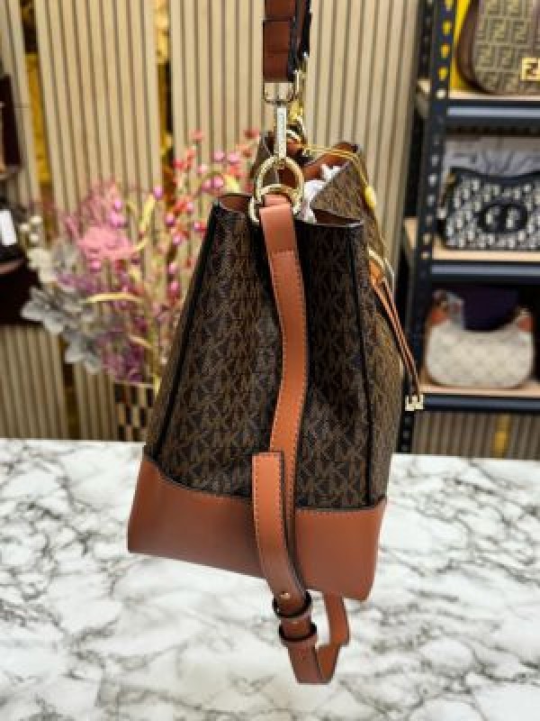 Michael Kors Mercer Premium Quality Bucket Bag With Dust Bag (Brown) – Luxury Designer Shoulder Bag for Women.