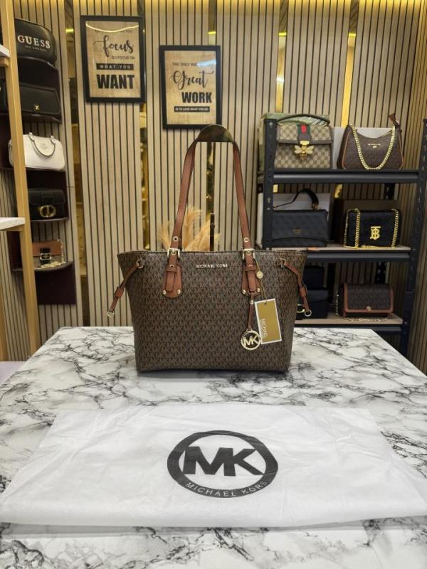 Upgrade your everyday style with the elegant Michael Kors Voyager Tote Bag (Brown). Designed with the iconic MK signature monogram print, this tote blends luxury fashion with practical functionality, making it a perfect choice for modern women.
