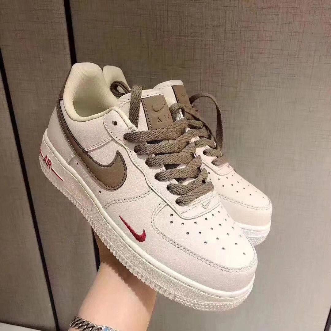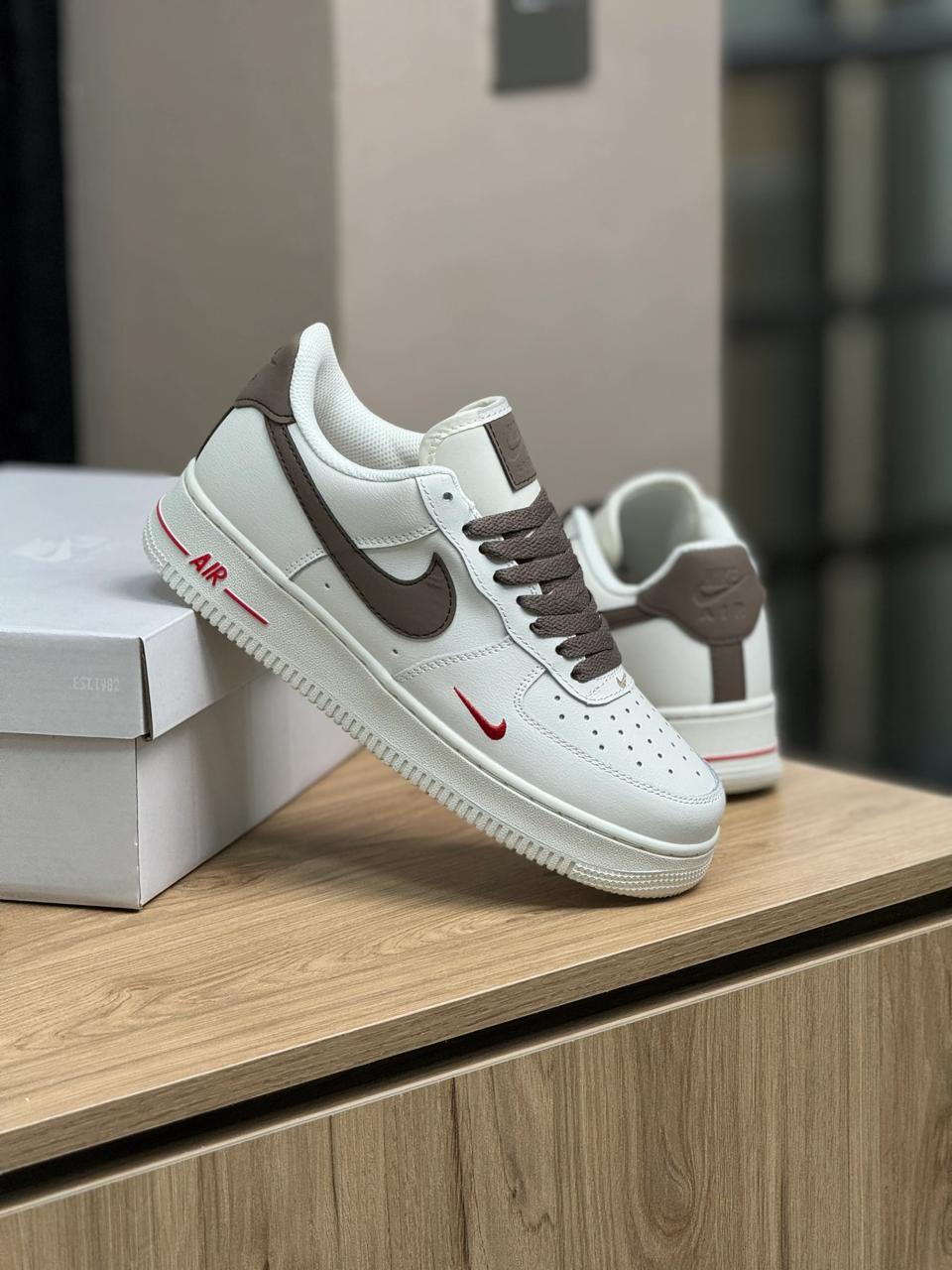 The first thing you will notice about the Nike Air Force 1 Beige Brown Sneakers is their refined color balance. The beige upper gives a soft, premium look, while the brown Swoosh and matching lace tones create depth and contrast. Additionally, the subtle red mini Swoosh detail on the midsole adds a touch of uniqueness.