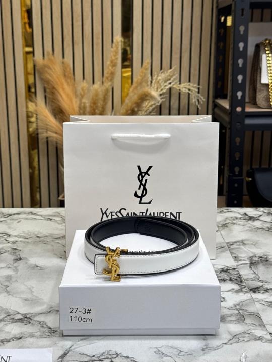- Buckle: Iconic gold YSL monogram